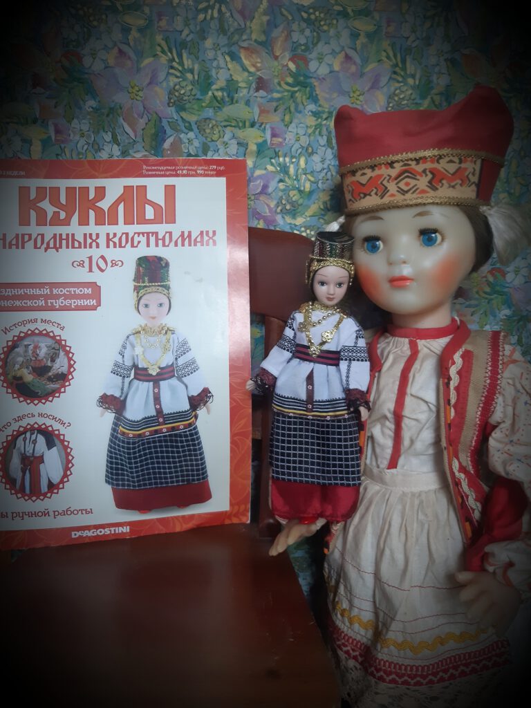Она так любила куколок, что, увидев в киоске очередной выпуск, обязательно приобретала для меня. И привозила сюда. Эти первые куклы даже пахнут МАМОЙ. Вот об этой куколке в праздничном костюме Воронежской губернии у меня есть журнал, вырезку из которого я и предлагаю.
