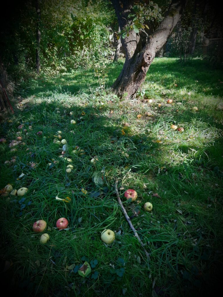 А какие они вкусные… Мы едим яблоки в оладьях, яблоки, запеченные в духовке, шарлотки с яблоками, котлеты мясные, рыбные и капустные с обязательным добавлением в фарш тертых яблок, а также варим компот из яблок по-русски и по-немецки, лопаем яблочно-персиковое пюре, ну и, конечно, варим яблочный джем на зиму.