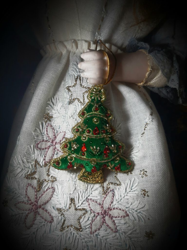 На этих фотографиях ранняя девочка Kestner на кожаном теле. Я отвела душу и сшила ей изо льняной ткани с ручной вышивкой праздничный передник. Это было просто успокоительное действо… Крайне приятное и не очень затратное по времени… Я осталась очень довольна…